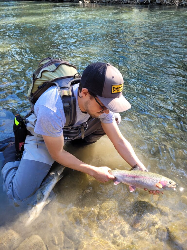 Michael with a nice rainbow caught on an egg pattern during the sockeye spawning season.